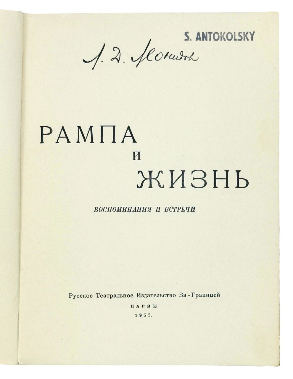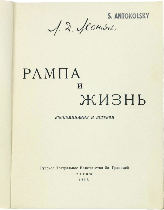 Леонидов Л.Д. Рампа и жизнь: Воспоминания и встречи. Париж: Русское Театральное Издательство За-Границей, 1955. 329 с.: ил.