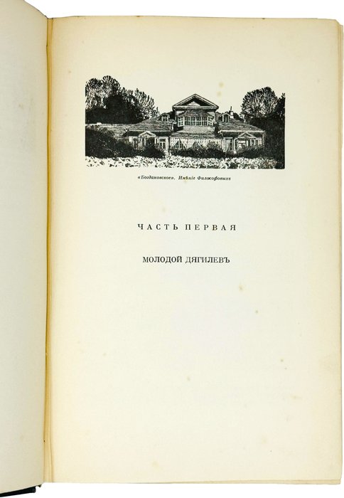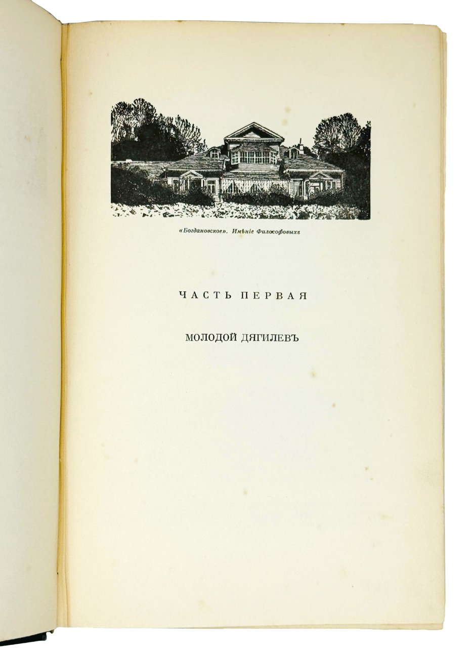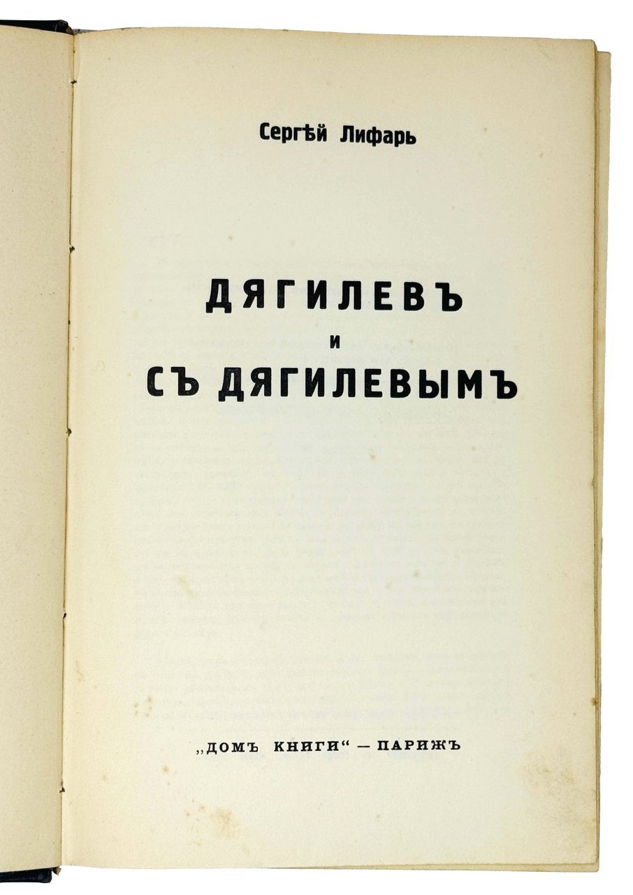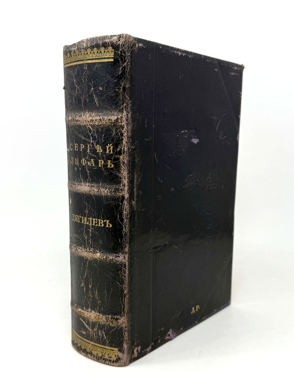 Лифарь С. Дягилев и с Дягилевым. Париж: Дом книги, 1939. 1 л. портр. (фронт.), 499, [5] с.: ил., 31 л. ил. В цельнокожаном переплете эпохи с золотым тиснением по корешку, потертости и повреждения кожи переплета, лисьи пятна.