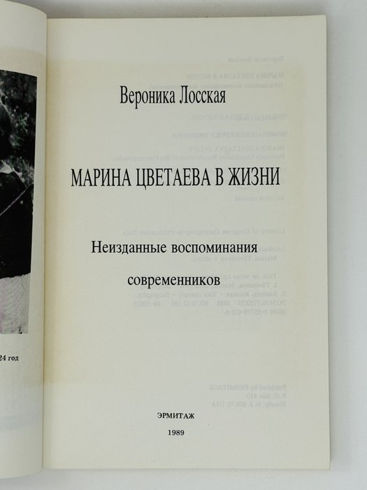 Лосская В. Марина Цветаева в жизни: Неизданные воспоминания современников. Тенафлай (Нью-Джерси): Эрмитаж, 1989. 332 с. 23х15,5 см.