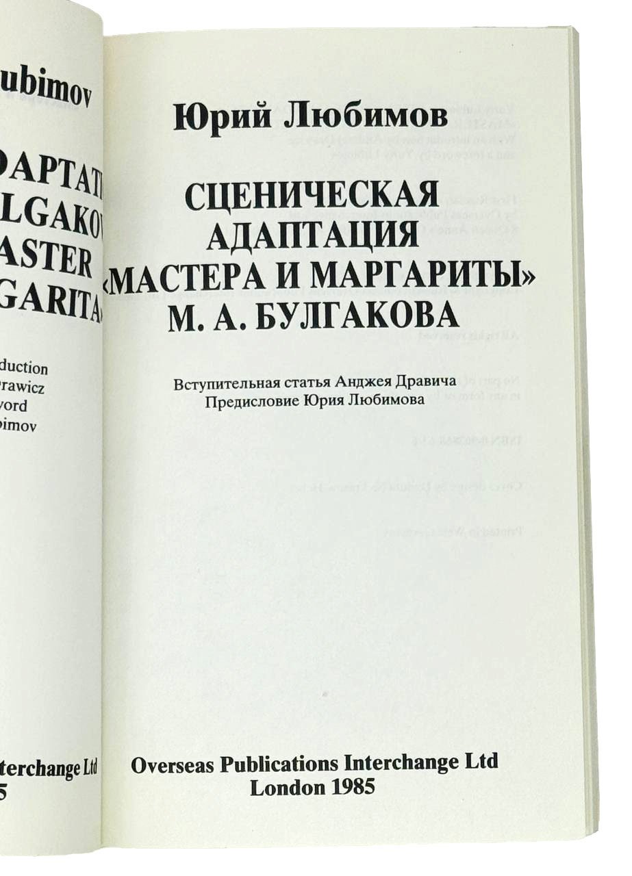Любимов Ю. Сценическая адаптация «Мастера и Маргариты» М.А. Булгакова. Лондон: OPI, 1985. 105 с. 18,5х12 см.