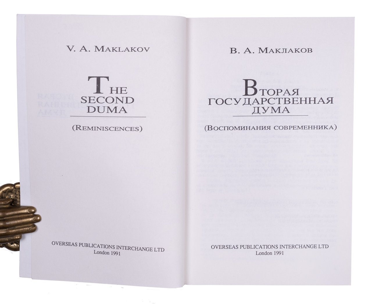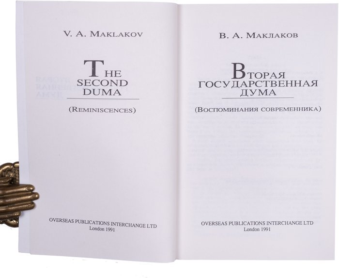 Маклаков В. Вторая Государственная Дума. Лондон: OPI, 1991. 258, [2] с. 18х12 см.