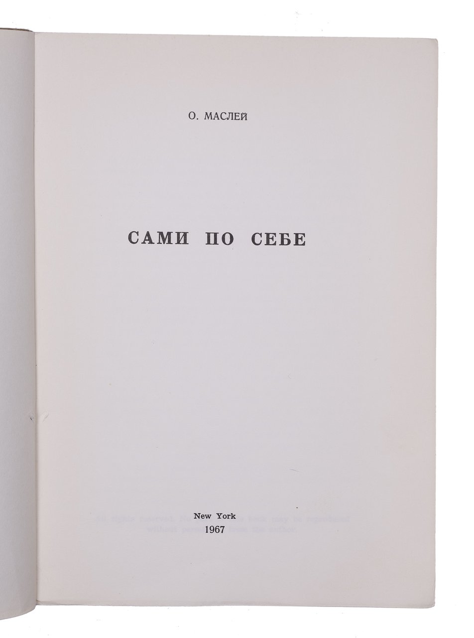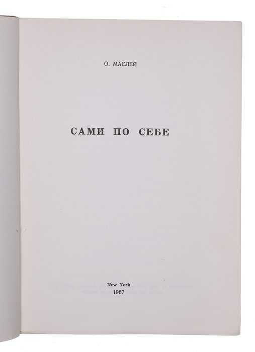 Маслей О. Сами по себе. Нью-Йорк: V.Kamkin, 1967. 332 с. 21х14,5 см.