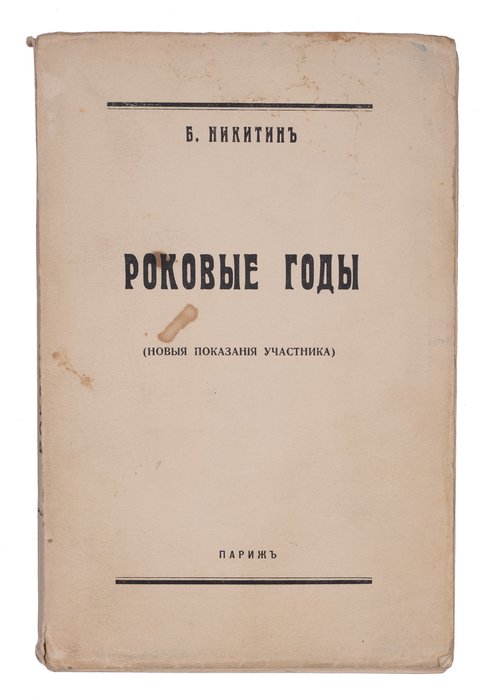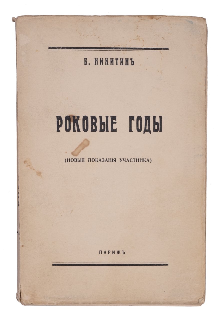 Никитин Б. Роковые годы: (Новые показания участника). Париж: Б.и., [1937]. 272 с. 21,5х14,5 см.