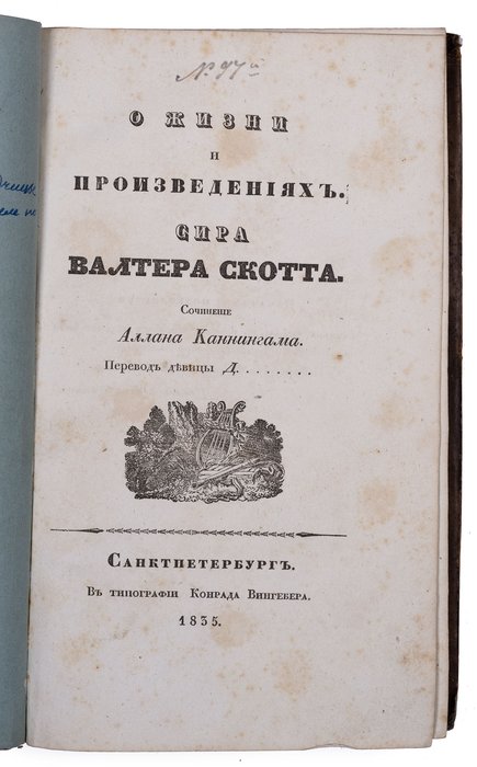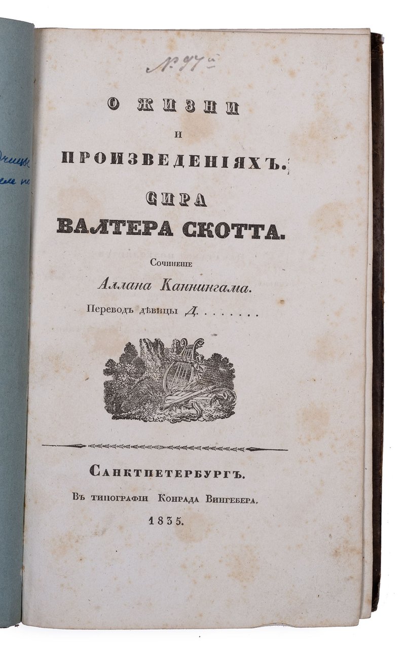 Каннингам А. О жизни и произведениях сира Валтера Скотта. Санкт-Петербург: В тип. Конрада Вингебера, 1835.