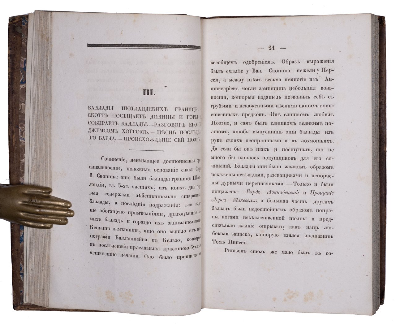 Первое русское издание. Одна из первых попыток биографий Вальтера Скотта (1771–1832), который был популярен в России еще при жизни.
