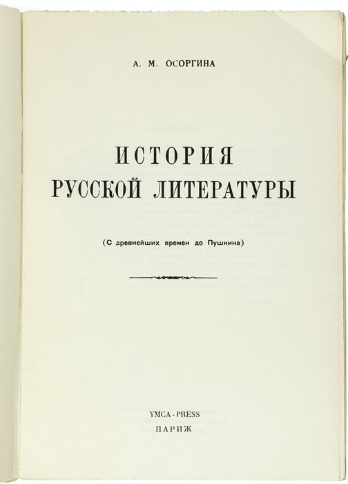 Осоргина А.М. История русской литературы: (С древнейших времен до Пушкина). Париж: YMCA-Press, 1945.