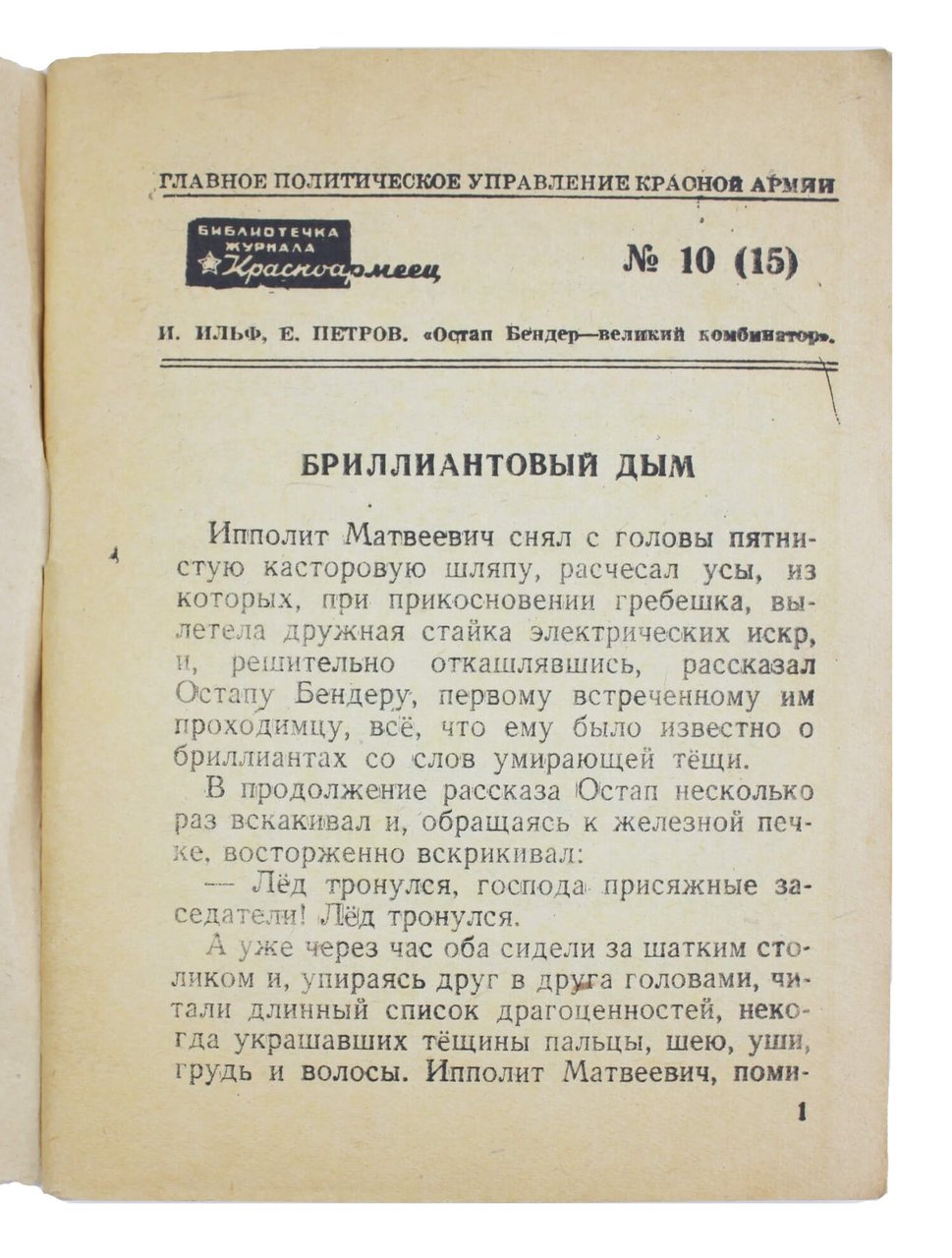 Остап Бендер — великий комбинатор : (Отрывки из повести “Двенадцать стульев”) / И. Ильф, Е. Петров. Москва: Воениздат, 1944.