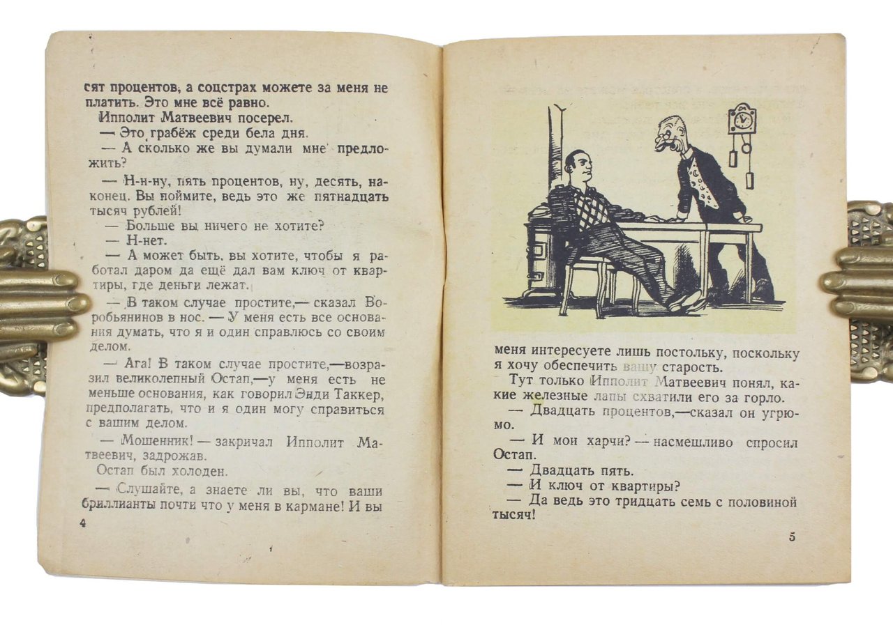 Остап Бендер — великий комбинатор : (Отрывки из повести “Двенадцать стульев”) / И. Ильф, Е. Петров. Москва: Воениздат, 1944. 64 с.: ил. 14х10 см.