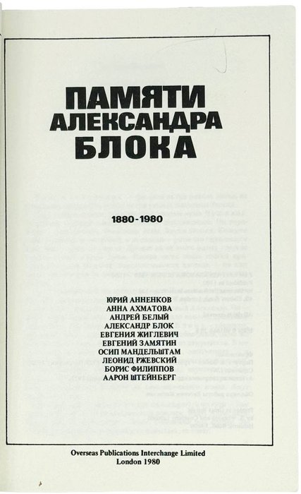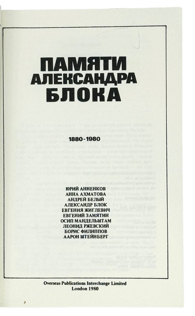 Памяти Александра Блока. 1880-1980. Лондон: OPI, 1980. 157, [2] с.: портр. 21,5х14,5 см.
