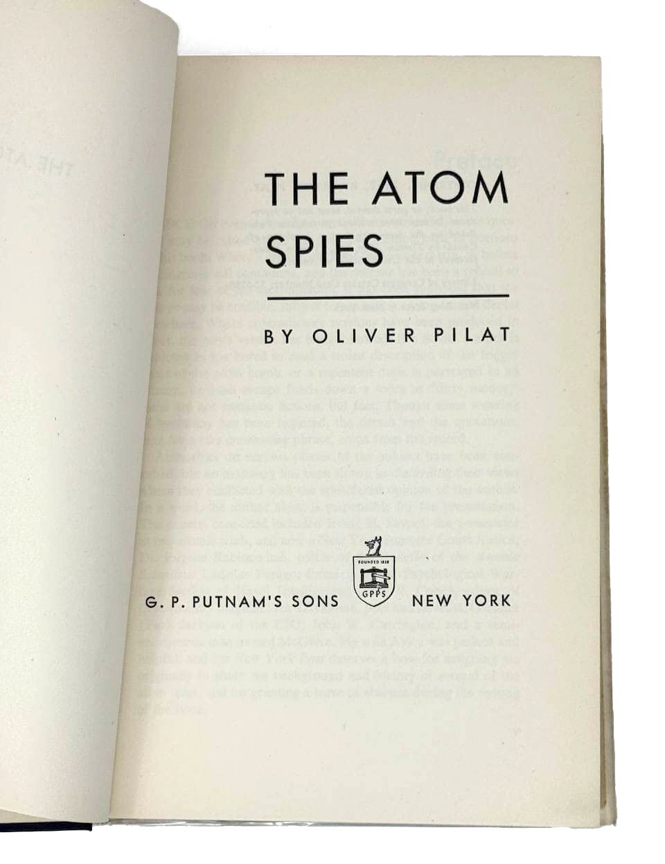 [Пилат О. Атомные шпионы. Нью-Йорк, 1952] Pilat O. The Atom Spies. New York: G.P. Putnam’s Sons, 1952. [VIII], 312 с. 22х14,5 см.