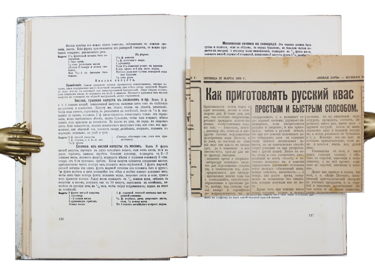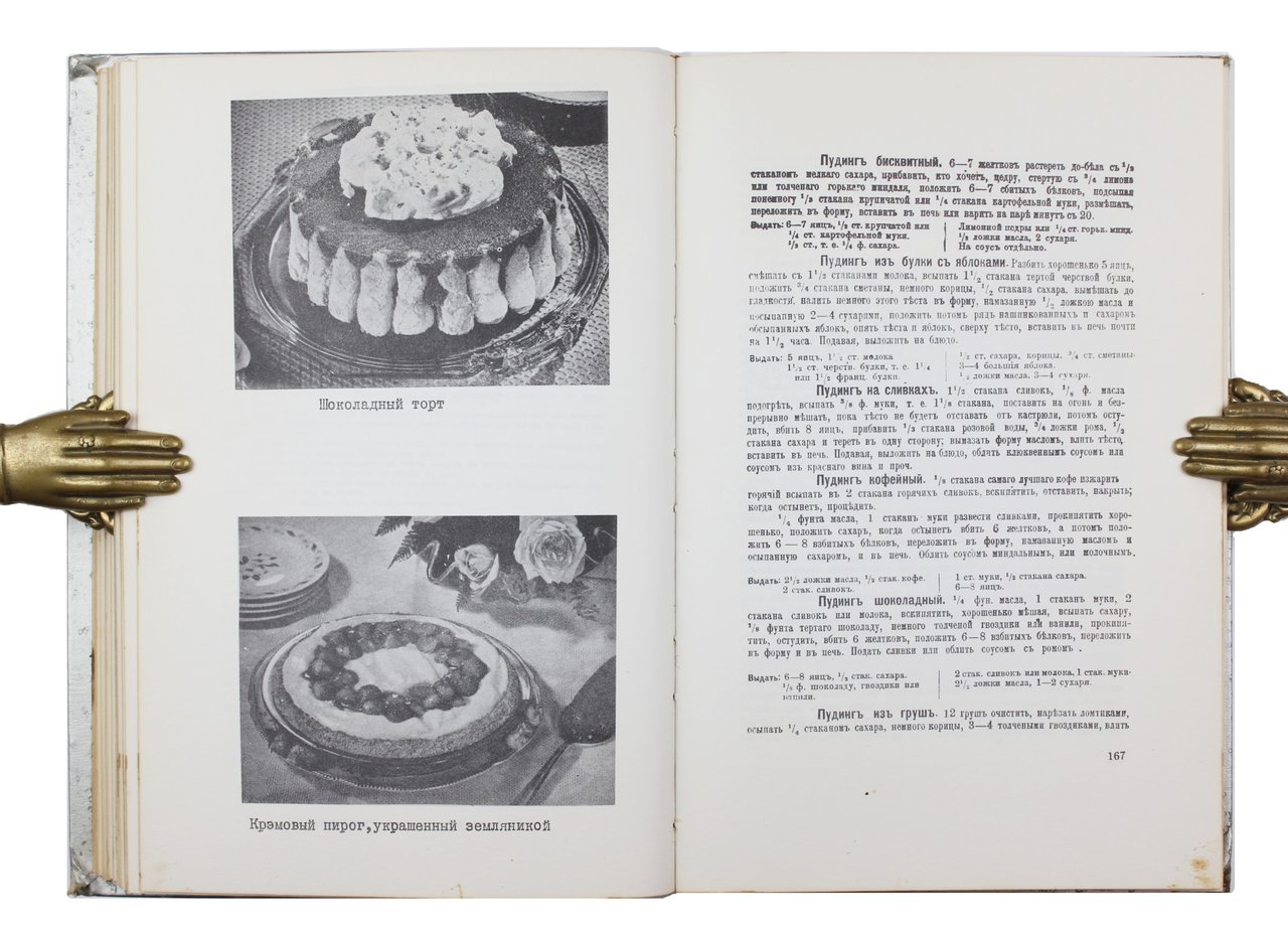 Самая популярная досоветская кулинарная книга в переиздании для русской диаспоры в Америке. Материал несколько перегруппирован, кроме того убраны “слишком устарелые или невыполнимые в современной американской обстановке рецепты”. Для наглядности были добавлены многочисленные черно-белые фотографии блюд и продуктов, взятые из поваренных книг того времени, как русских, так и американских. Фотографии полностраничные, отпечатанные как с двух сторон отдельных листов, так и на оборотных сторонах текстов рецептов. Кроме обширного оглавления, приложен указатель английских названий продуктов, упоминаемых в рецептах. Даны также пояснения к ряду названий продуктов, приправ и посуды, вышедших из повседневной речи. На обороте титульного листа дан перевод дореволюционных мер и весов в современные, которыми пользовались и в ХХ веке.