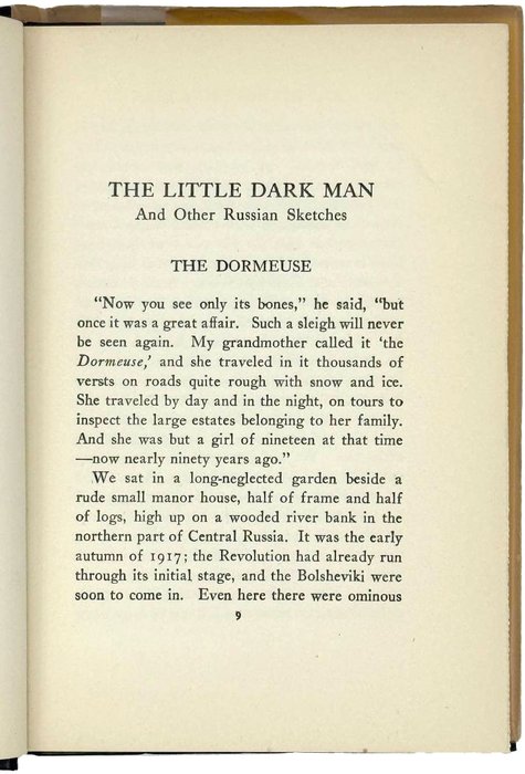 Сборник рассказов, написанных в духе мистического реализма. Они были якобы услышаны автором от его русского друга накануне Октябрьской революции. Среди них рассказы о деревенской жизни, русских святых и старцах и духовном измерении крестьянской жизни во времена великих потрясений.
