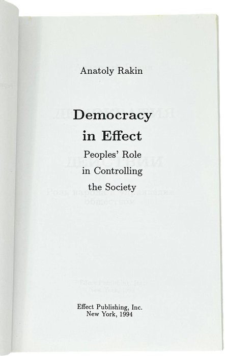 Ракин А. Демократия в действии: Роль народа в управлении обществом = Democracy in Effect: People's Role in Controlling the Society. New York: Effect Publishing, 1994.