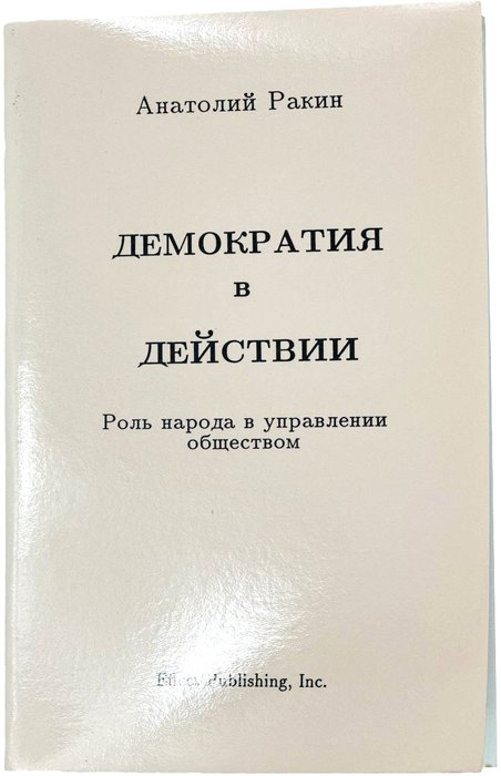 Ракин А. Демократия в действии: Роль народа в управлении обществом = Democracy in Effect: People's Role in Controlling the Society. New York: Effect Publishing, 1994. 195 с. 21х13,5 см.
