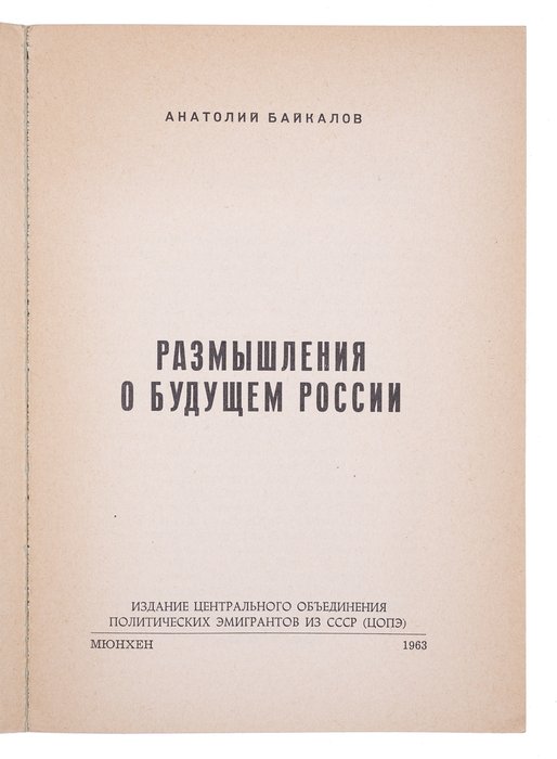 Байкалов А. Размышления о будущем России. Мюнхен: Издание Центрального объединения политических эмигрантов из СССР (ЦОПЭ), 1963. 59 с. 21х15 см.