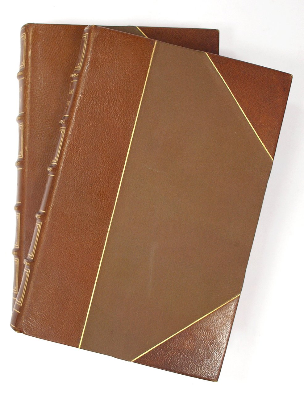В двух современных полукожаных переплетах, с декоративным тиснением по корешку и крышкам, золоченые головки обрезов. В очень хорошем состоянии, минимальные потертости уголков переплета, лисьи пятна.