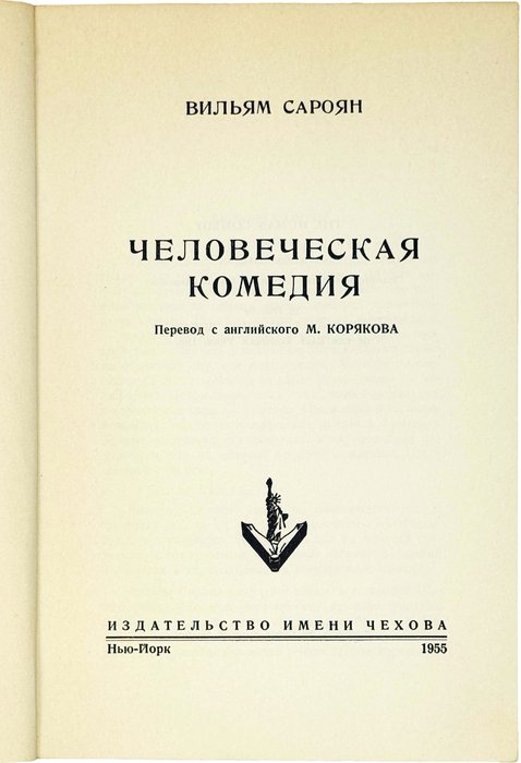 Сароян В. Человеческая комедия. Нью-Йорк: Издательство имени Чехова, 1955. 313 с.