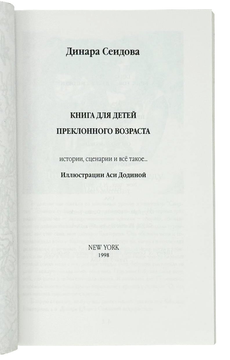 Сеидова Д. Книга для детей преклонного возраста: Истории, сценарии и всё такое... Нью-Йорк: Слово – Word, 1998.