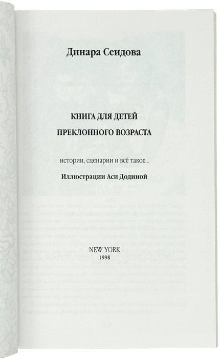 Сеидова Д. Книга для детей преклонного возраста: Истории, сценарии и всё такое... Нью-Йорк: Слово – Word, 1998. 141 с.: ил. 21х13,5 см.