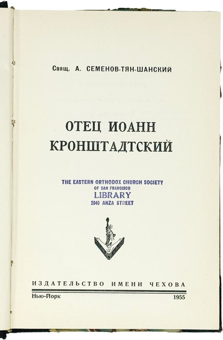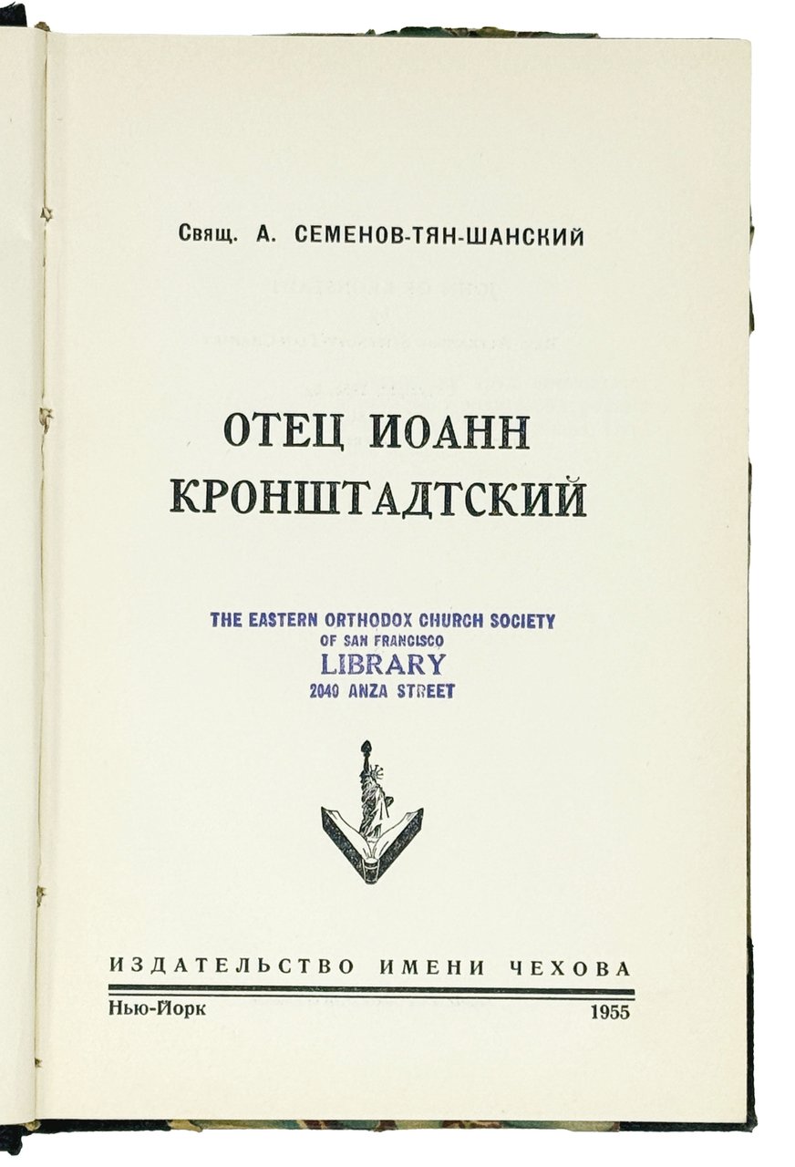 Семенов-Тян-Шанский А. Отец Иоанн Кронштадский. Нью-Йорк: Издательство Имени Чехова, 1955.