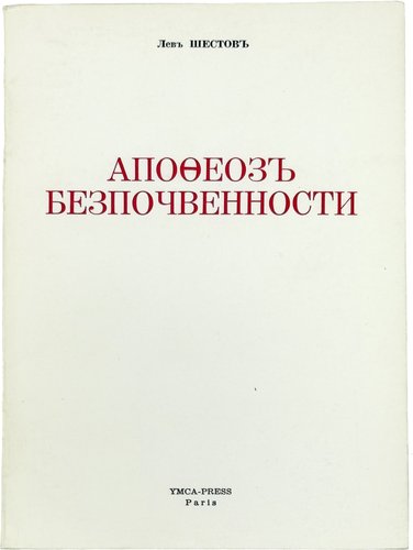 Шестов Л. Апофеоз беспочвенности: Опыт адогматического мышления. Париж: YMCA-Press, 1971. 300, [2] с. 18х14 см.