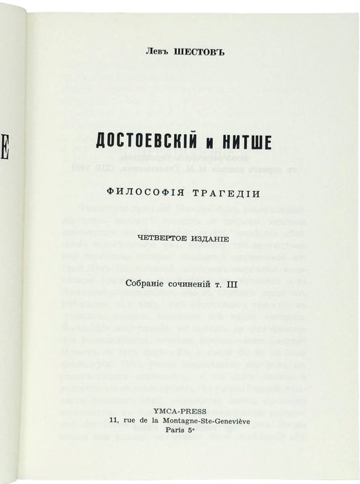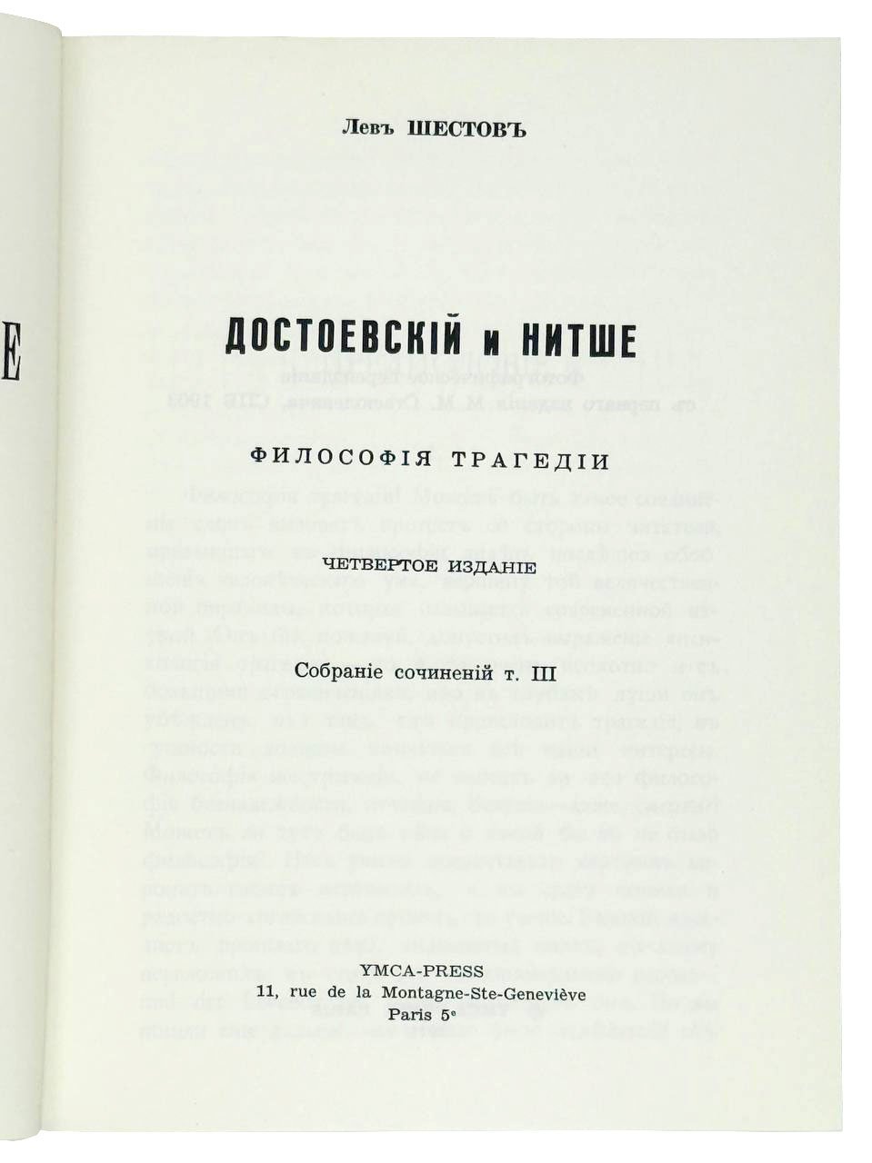 Шестов Л. Достоевский и Ницше. Париж: YMCA-Press, 1971. 249 с. 19х14 см.