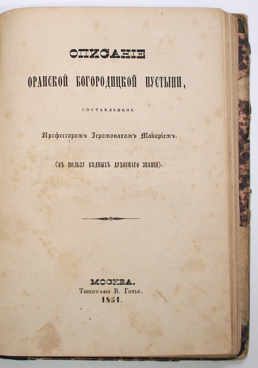 2) Описание Оранской Богородицкой пустыни / Сост. профессором иеропонахом Макарием. М.: Тип. В. Готье, 1851. 65 с. 20,5х14.