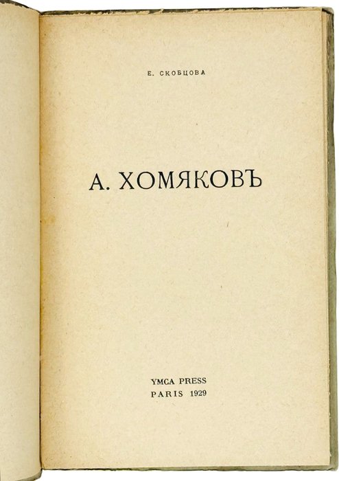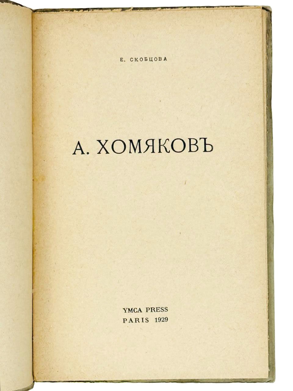 Скобцова Е. А. Хомяков. Париж: YMCA-Рress, 1929. 60 с. 19х12 см.