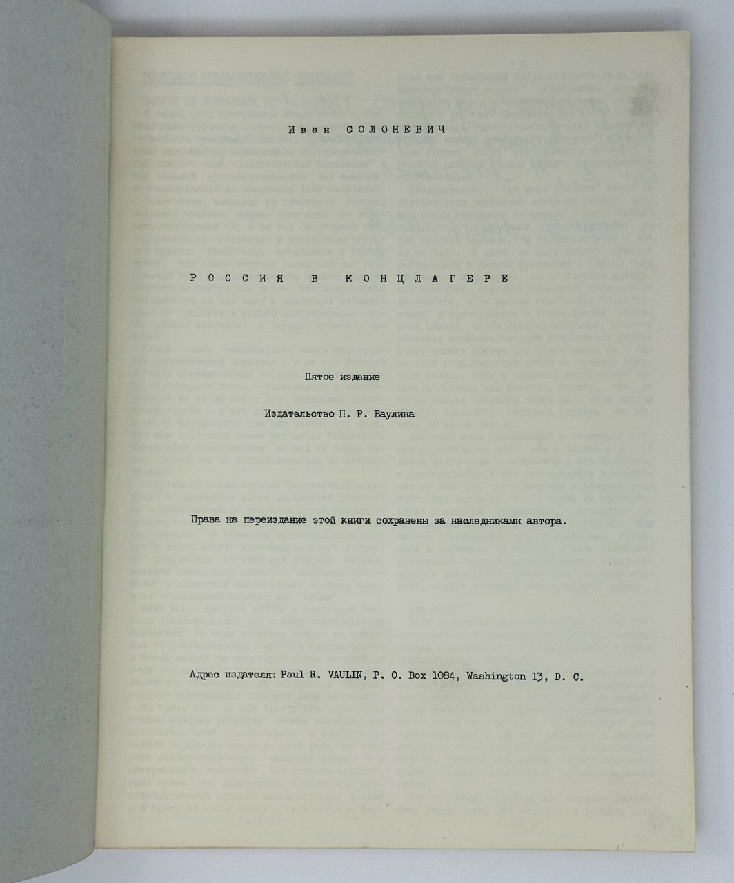Солоневич И. Россия в концлагере. Вашингтон: П. Ваулин, 1958. 512 с. 28х22 см.