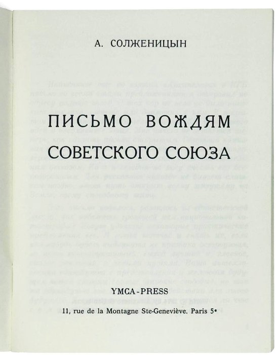 Солженицын А. Письмо вождям Советского Союза. Париж: YMCA-Рress, 1974.