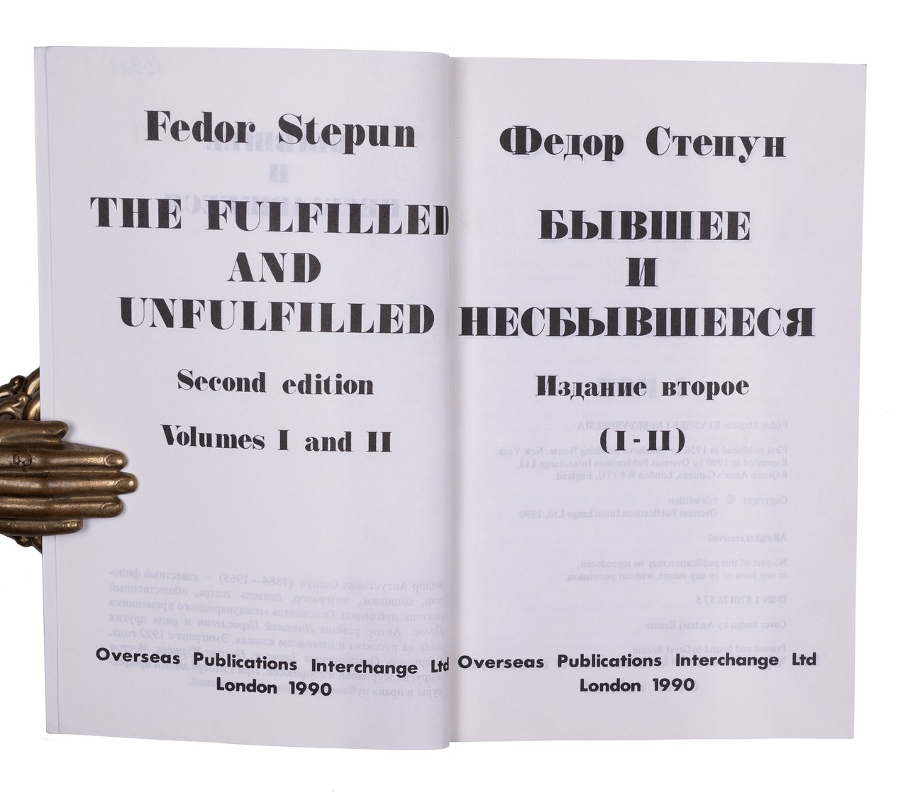 Степун Ф. Бывшее и несбывшееся [В 2 тт.]. Лондон: OPI, 1990. 396, 429 с. 18х12 см.