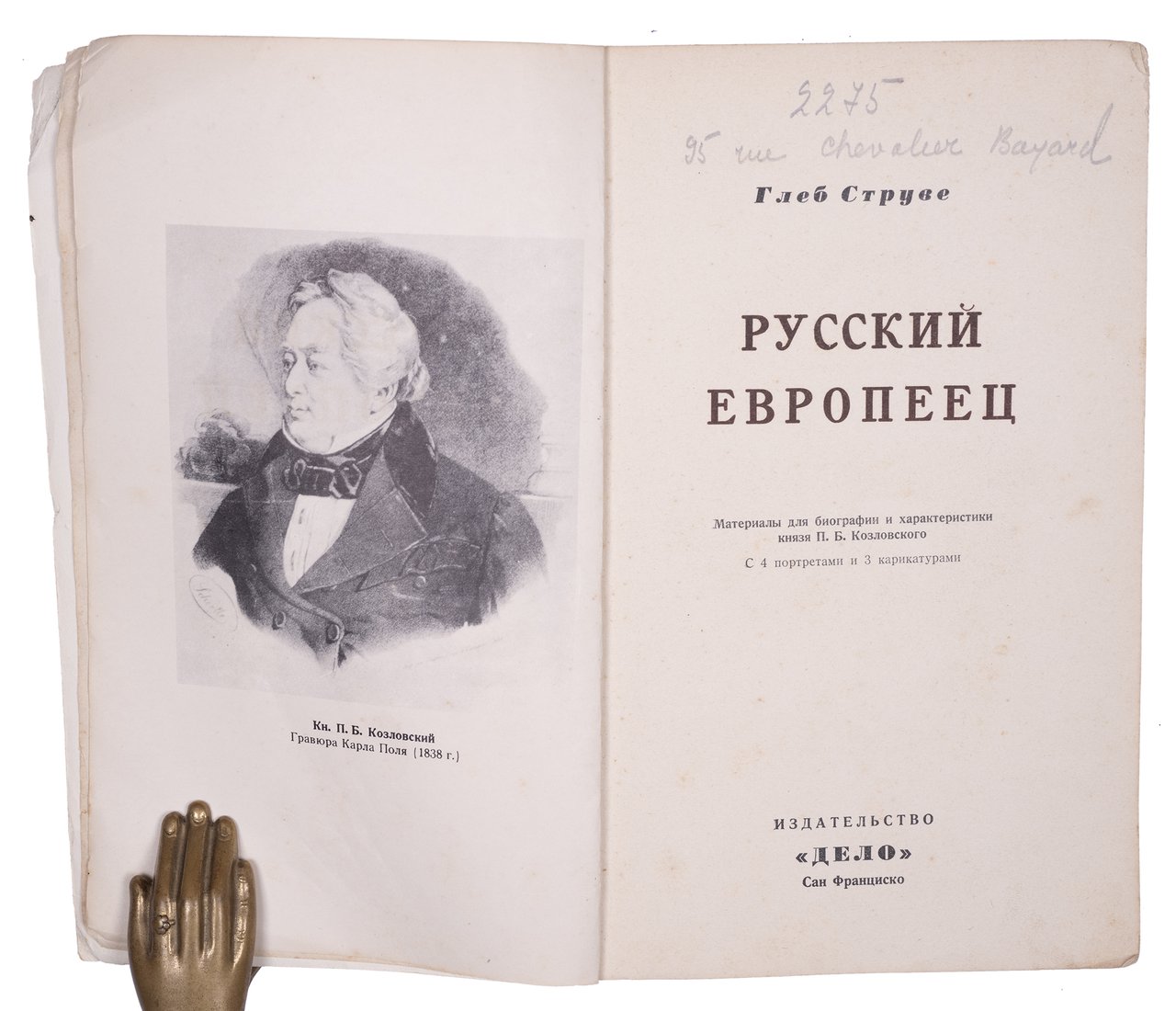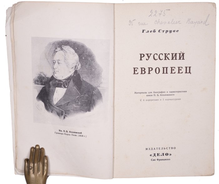 Струве Г.П. Русский европеец. Материалы для биографии и характеристики князя П.Б.Козловского. С 4 портретами и 3 каррикатурами. Сан-Франциско: Дело, 1950. 164 с. 22х14,5 см.