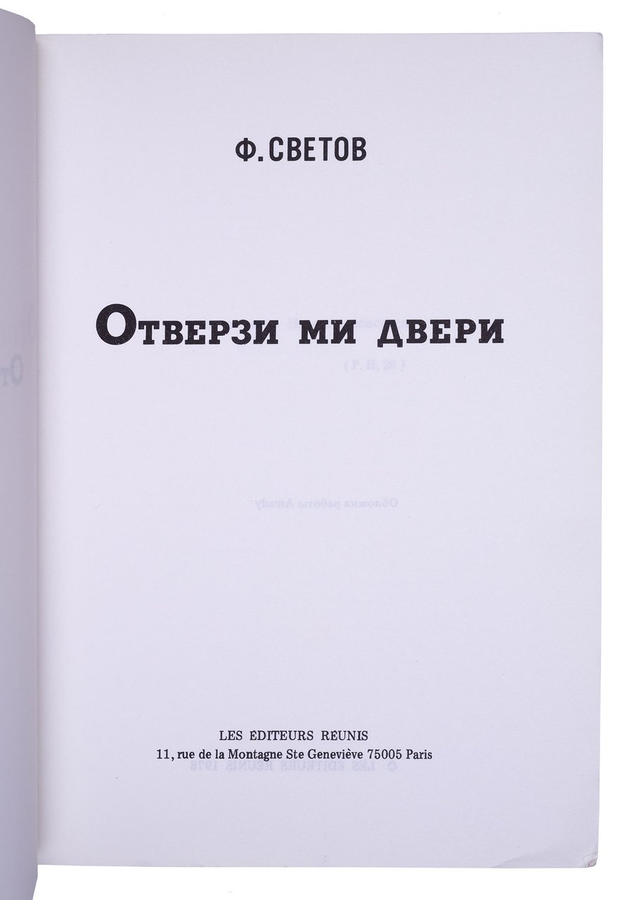 Светов Ф. Отверзи ми двери. Paris: Les Editeurs Reunis, 1978. 560 с. 21х15 см.