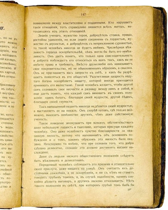 В составном переплете эпохи с кожаным корешком и суперэкслибрисом «Блинов», верхняя сторонка издательской обложки сохранена в переплете. Утрата с. 383-394, 413-414. Сильные потертости, повреждения и утрата фрагментов переплета, уголки сбиты, утрата свободных листов форзацев, в блоке загрязнения и надрывы, некоторые страницы обветшали, утрата фрагментов нескольких листов, многочисленные владельческие подписи и пометы.