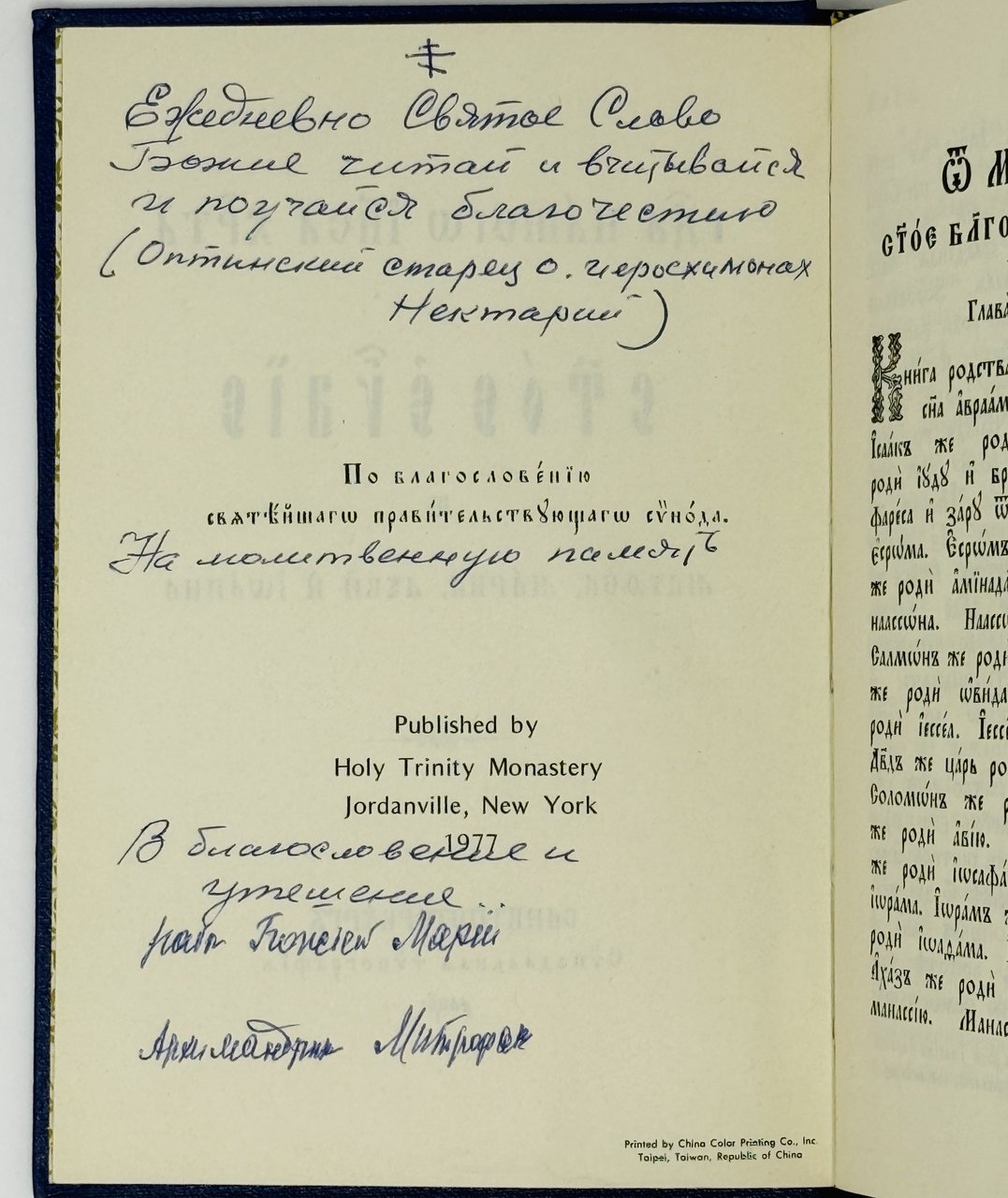 Святое Евангелие. Джорданвилл: Holy Trinity Monastery, 1977.