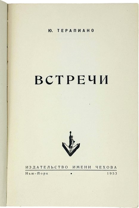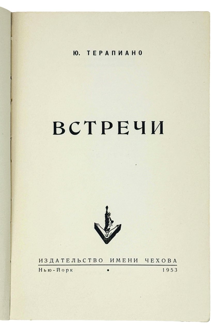 Терапиано Ю. Встречи. Нью-Йорк: Издательство имени Чехова, 1953. 204 с. 21,5х14 см.