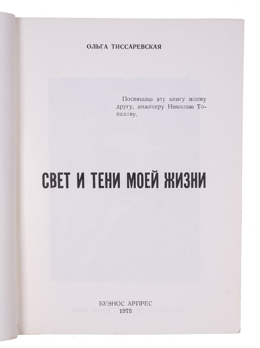 Тиссаревская О. Свет и тени моей жизни. Буэнос-Айрес: Издание автора, 1973. 334 с. 19х14,5 см.