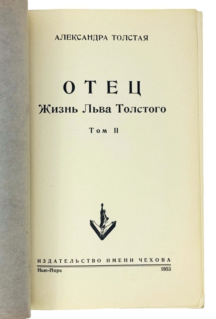 Толстая А. Отец: Жизнь Льва Толстого. Т. II. Нью-Йорк: Издательство имени Чехова, 1953. 414 с. 21,5х14 см.