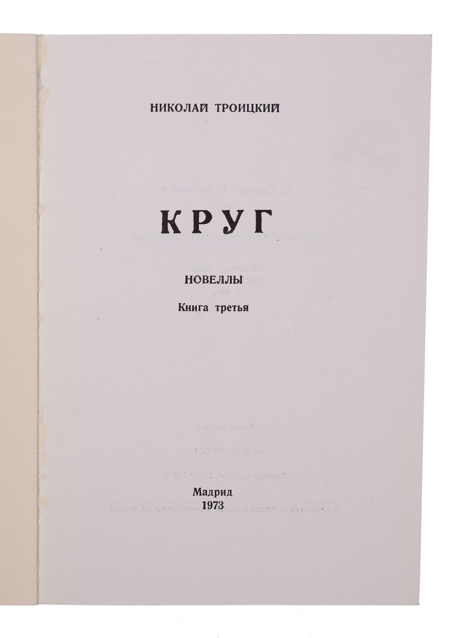 Троицкий Н. Круг: Новеллы. Книга третья. Канада: Заря, 1973. 83 с. 19х13 см.