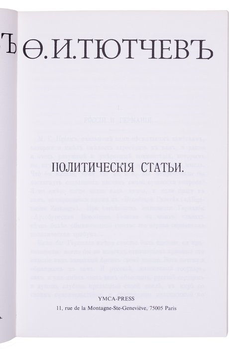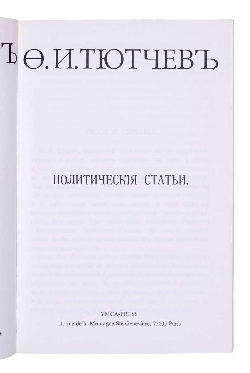 Тютчев Ф.И. Политические статьи. Париж: YMCA-Press, 1976. 172 с. 18,5х12 см.