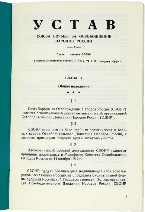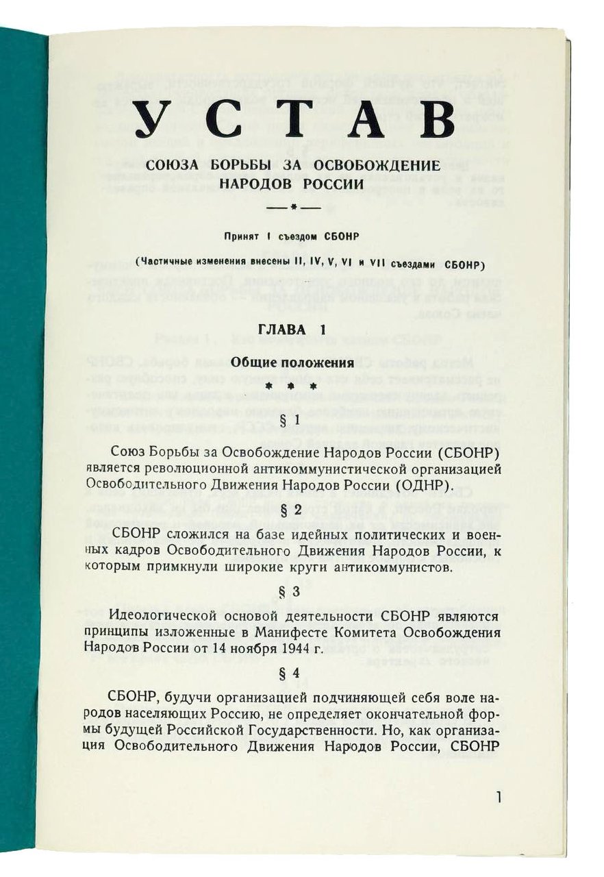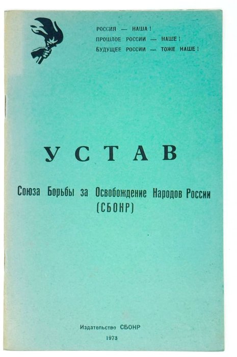 Устав Союза Борьбы за Освобождение Народов России (СБОНР). Лондон; Онтарио: Издательство СБОНР, 1973. 19 с. 21,5х14 см.