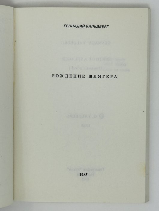Вальдберг Г. Рождение шлягера. Тель-Авив: Яаков, 1985. 197 с. 17х12 см.