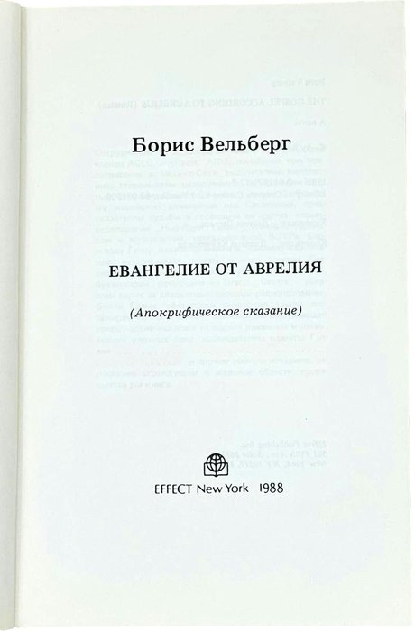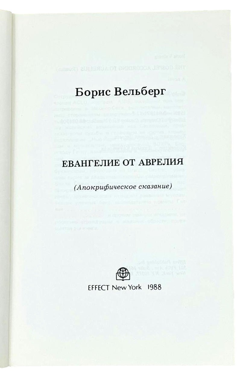 Вельберг Б. Евангелие от Аврелия: (Апокрифическое сказание). New York: Effect Publishing, 1988. 344 с.: ил. 21,5х14 см.