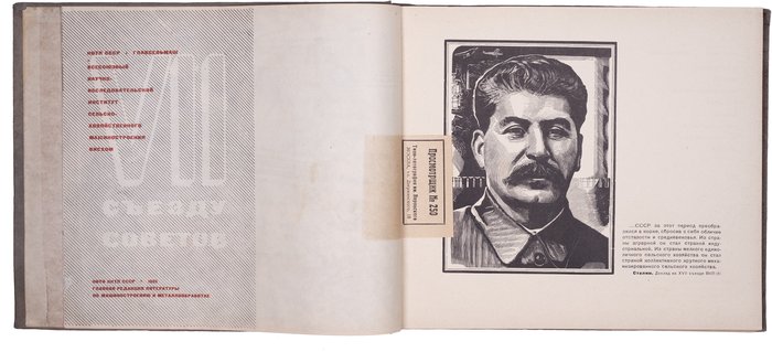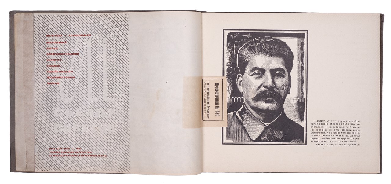 ВИСХОМ VII Съезду Советов. Москва: Главная редакция литературы по машиностроению и металлообработке, 1935. 209, [3] с.: ил., 3 портр. 21,5x25 см. В издательском коленкоровом переплете со слепым тиснением. Утрата суперобложки, следы от воды на переплете