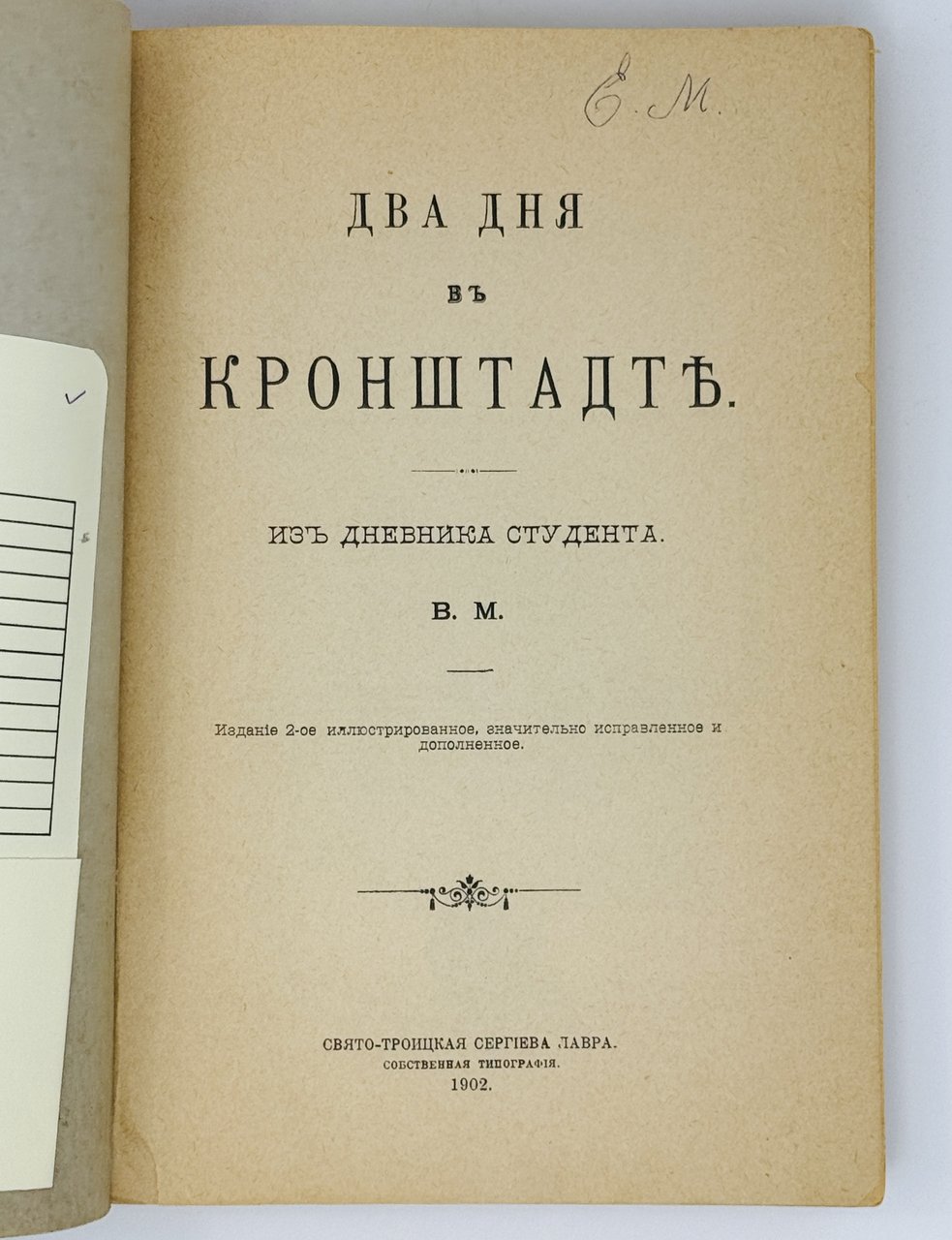 В.М. Два дня в Кронштадте: Из дневника студента. Джорданвилль: Holy Trinity Monastery, 1960. 458 с. 23,5х15,5 см.