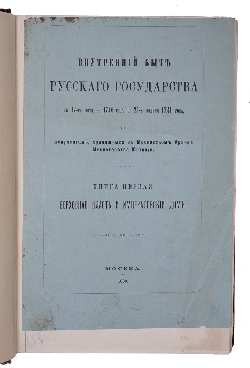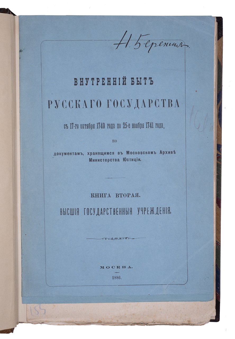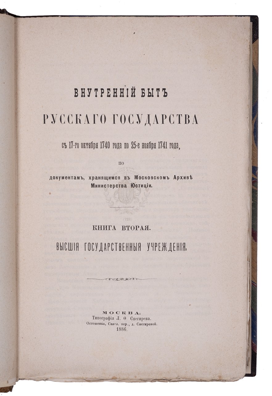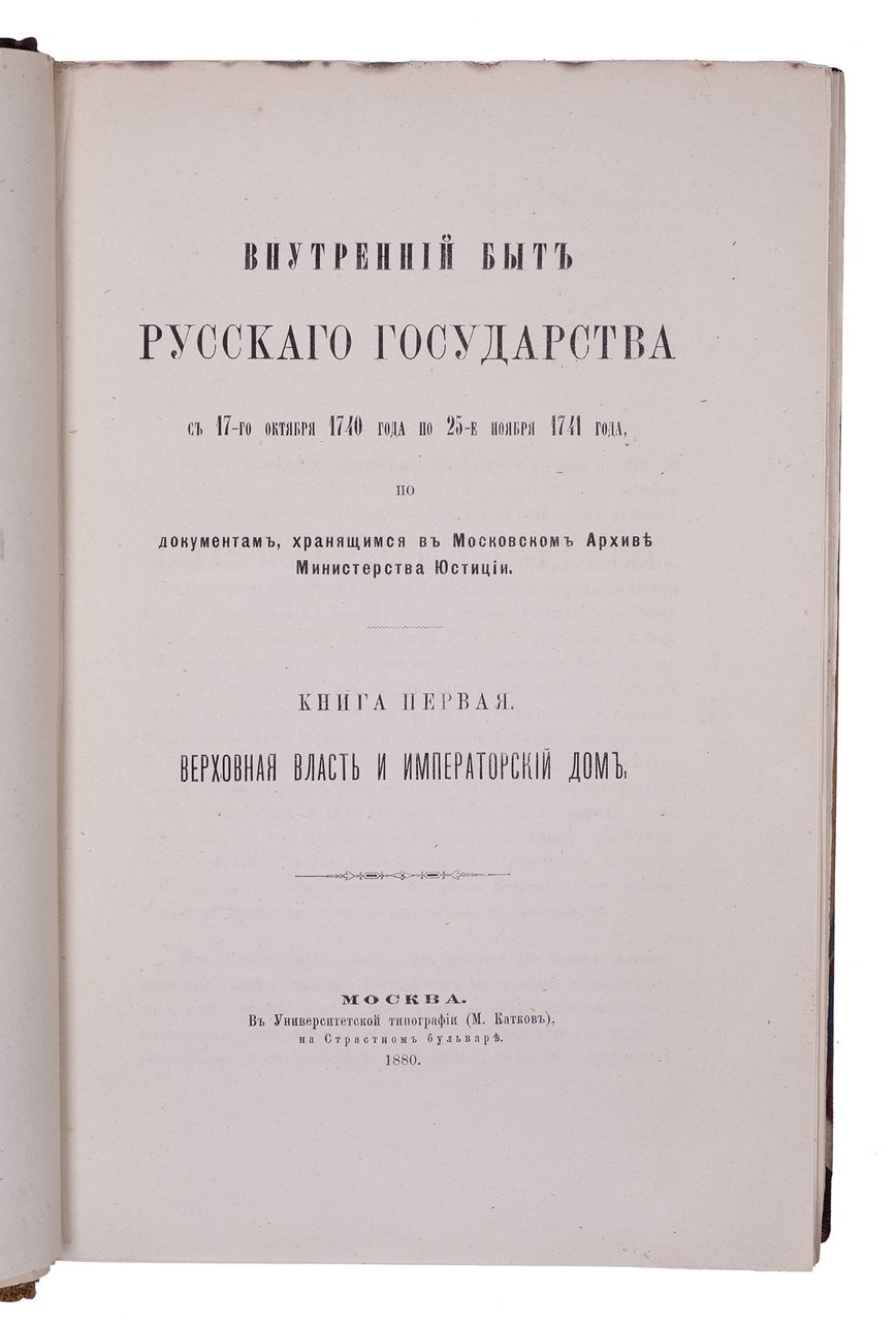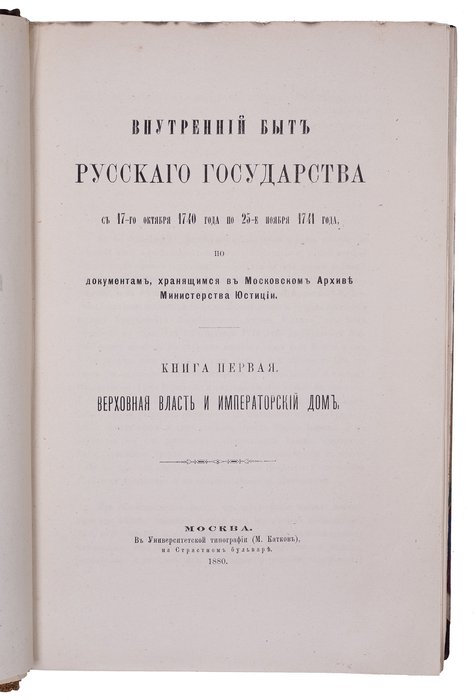 Внутренний быт Русского государства с 17-го октября 1740 года по 25-е ноября 1741 года, по документам, хранящимся в Московском архиве министерства юстиции : Кн. 1-2. Москва: Университетская тип., 1880-1886.