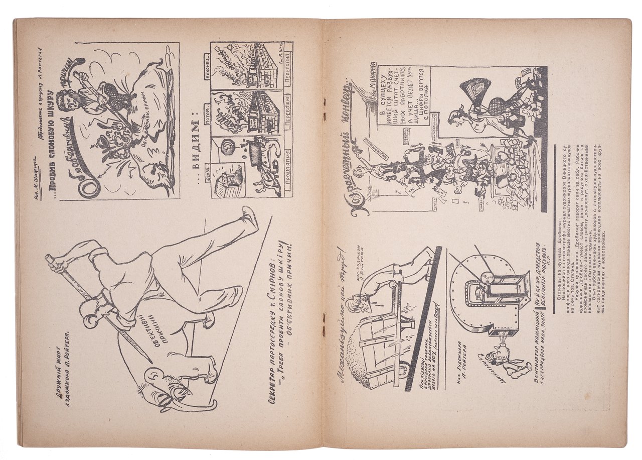 Обложка оформлена ультраправым художником Алексеем Немовым, а на ее обороте напечатана обложка журнала “Дробилка” (1931, №2), созданная иллюстратором Липой Ройтером (его шаржи из винницкого журнала “Дробилка” также представлены внутри на развороте). Другая работа Немова представлена на вклейке – продолжая тему рабочих АМО, художник изобразил индивидуально ударника одного из цехов.