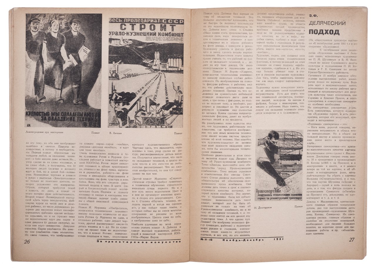 За пролетарское искусство №11/12 за 1931. Москва; Ленинград: Изогиз, 1931.
