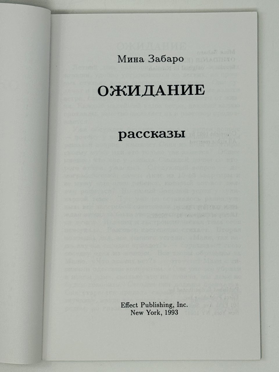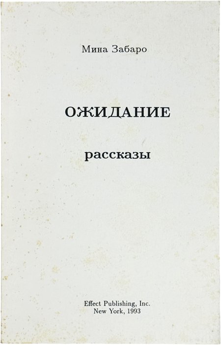 Забаро М. Ожидание. Рассказы. Нью-Йорк: Effect Publishing, 1993.