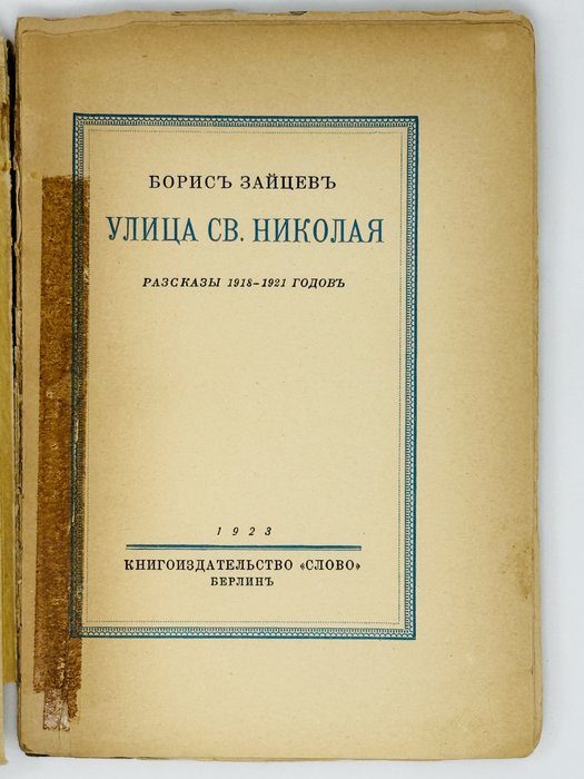 Зайцев Б. Улица св. Николая : Рассказы 1918-1921 годов. Берлин: Слово, 1923. 115 с.